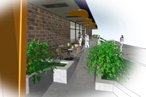 The owner’s concepts guided the design, with curving walls screening the bar and kitchen service areas from the dining room. Seating for 94 is provided in the dining room, with an area for live entertainment or to accommodate special functions. The bar and lounge can seat another 22, and al fresco seating is also provided overlooking a tranquil public promenade.